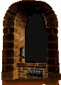Moving away from the window, a doorway can be seen to another end of the room. This door leads to the rest of Vampyre's Lair.